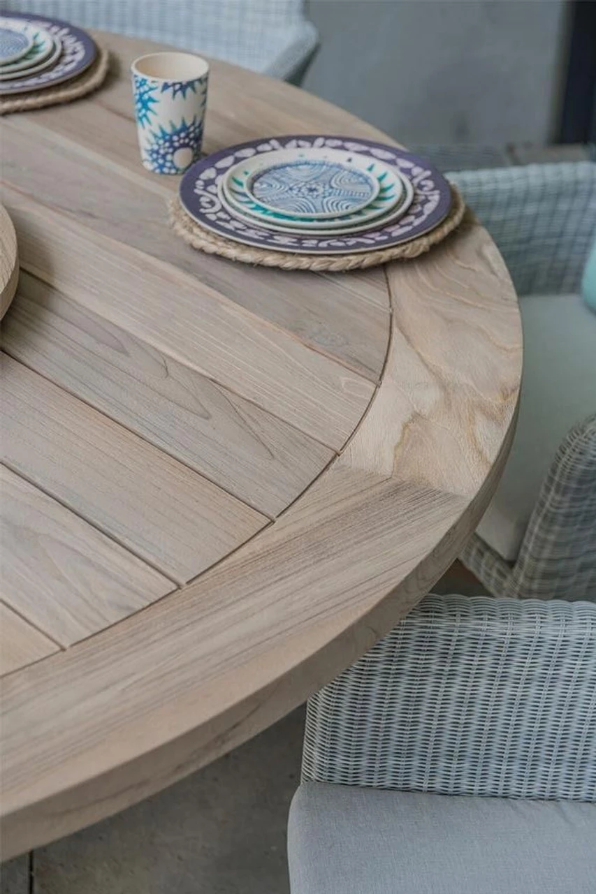 Teak is a solid wood that is made to last outside all year round, we give a 5-year warranty on all manufacturing or construction faults. Teak is a natural material that always needs a certain amount of maintenance. Fortunately, this is a simple task with our 4 Seasons Outdoor (4SO) maintenance products.