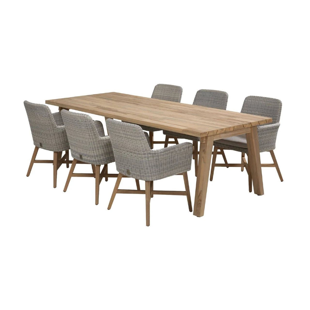 4 Seasons Outdoor – Lisboa 6 Seater Rattan Set with 240cm x 100cm Rectangular Table Polyloom Iuce, Teak Legs