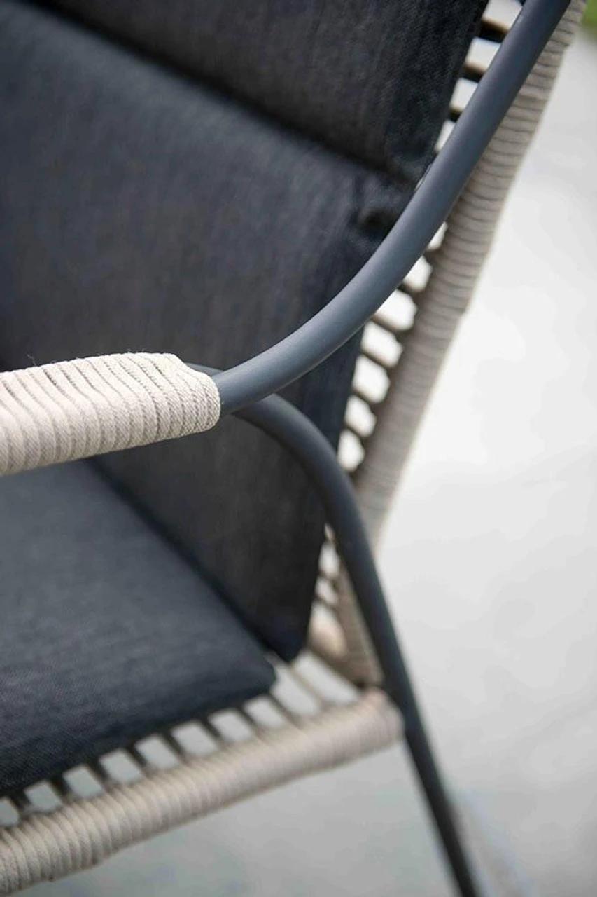 Less is more, within our Scandic series the garden furniture is minimalist in design with functional simplicity and elegant design. The beautiful frames are made of stainless steel and have an anthracite coating. In this frame, a beautiful flat Rope is braided with a soft and comfortable appearance. The round shapes keep this modern design completely in balance. The Scandic garden furniture has thin but very comfortable cushions with an Olefin fabric cover: