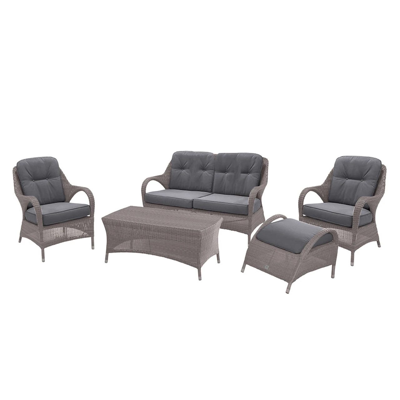 4 Seasons – Sussex 5 Piece Rattan Sofa Set With Footstool, Polyloom Pebble
