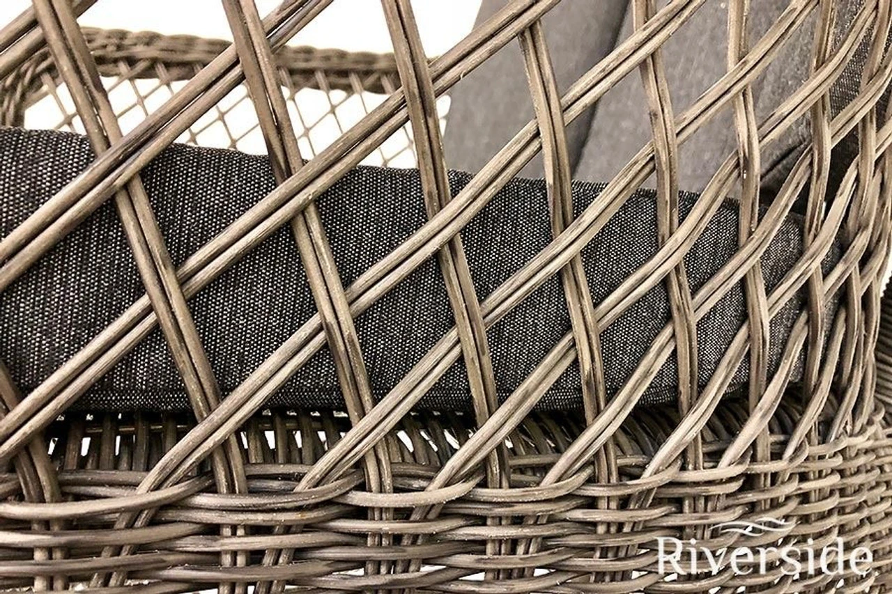 Alexander Rose’s Monte Carlo range is manufactured in Cebu, using their in house weavers at the very top of their profession. The 3mm textured synthetic rattan gives a natural feel and the charcoal grey upholstered cushions complement the mid grey weave.