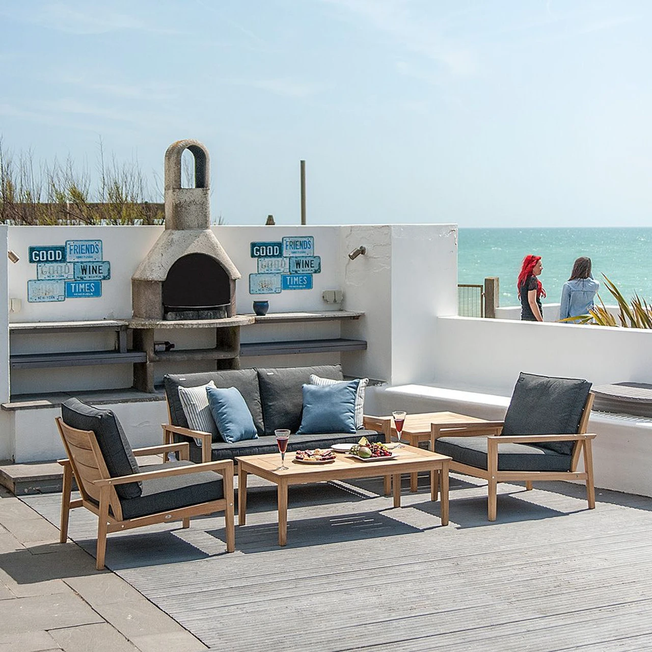 Alexander Rose timber furniture is designed with this in mind and its strength and durability will remain unaffected. Wooden furniture can be treated with Alexander Rose’s specially formulated care products to enhance the natural look of the wood. Alternatively the wood surfaces can be left and will eventually turn an attractive mellow silver grey, and should be occasionally cleaned with soapy water.