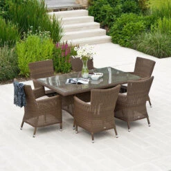 If you’re looking for the ideal family dining table, then look no further than this San Marino 6 Seater Set. With the ability to be place indoors or outdoors, this set would look as brilliant on a sun drenched patio as it would in a cosy conservatory.